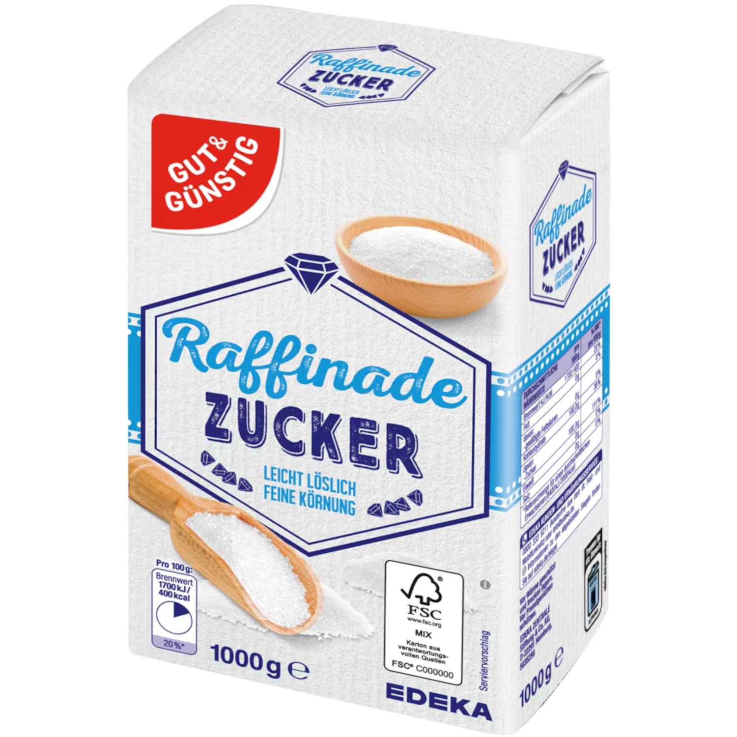 x10x Gut&Günstig Raffinade Zucker leicht löslich feine Körnung (10x1kg Packung)