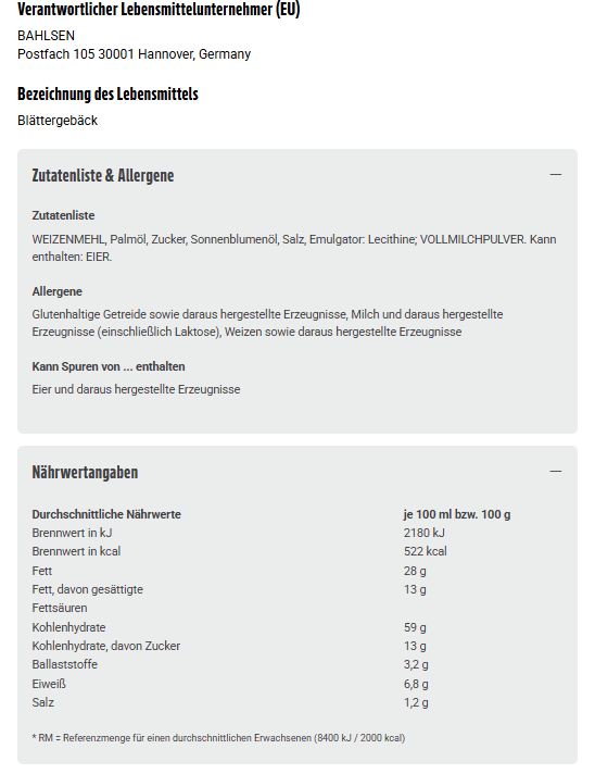 WEIZENMEHL, Palmöl, Zucker, Sonnenblumenöl, Salz, Emulgator: Lecithine; VOLLMILCHPULVER. Kann enthalten: EIER.