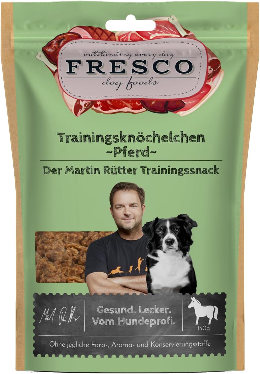 Wenn echte Hundemenschen aufeinander treffen, stehen die Chancen gut, dass etwas Besonderes entsteht. Und genauso war es auch, als wir von FRESCO den Hundeprofi Martin Rütter kennenlernten. Auf seiner "FREISPRUCH!"-Tour hatten wir die Gelegenheit, uns über unsere liebsten Vierbeiner, deren Erziehung und – logischerweise – über natürliches und gesundes Hundefutter auszutauschen. Unser Ernährungskonzept und Martins Vorstellungen einer hundegerechten Ernährung ergänzten sich dabei perfekt: "Gesunde und natürliche Zutaten, keine künstlichen Zusätze und Produkte Made in Germany, diese Kombination hat mich wirklich auf Anhieb überzeugt." Seitdem sind wir bei jeder Live-Show dabei und klären Dich dort darüber auf, wie einfach es sein kann, Deinen Hund ausgewogen und sinnvoll zu ernähren. Martin und vor allem seine Emma waren überaus angetan von unseren Trainingsknöchelchen aus getrocknetem B.A.R.F., die wir auf Martins Live-Shows an Dich verteilen. Und schnell ließ der Hundeprofi deshalb auch seine eigenen Ideen mit in die Überlegungen einfließen, wie der perfekte Trainingssnack aussehen und schmecken sollte. Direkt war uns klar: "Komm‘, wir machen das einfach!" Ganz stolz können wir Dir heute das Ergebnis der Zusammenarbeit präsentieren: die Martin Rütter Trainingssnacks. "Ich finde unsere Produkte echt gelungen", sagt Martin und ergänzt mit einem Schmunzeln: "Und das Allerwichtigste natürlich: Meine Emma liebt die Trainingssnacks von FRESCO!" Martin und wir von FRESCO sind auf jeden Fall von unseren Trainingssnacks überzeugt. Aber probiere sie einfach mal selber aus!