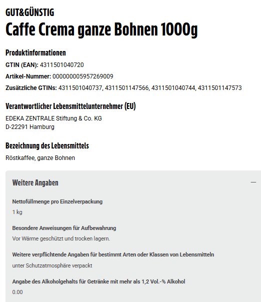 Bezeichnung des Lebensmittels