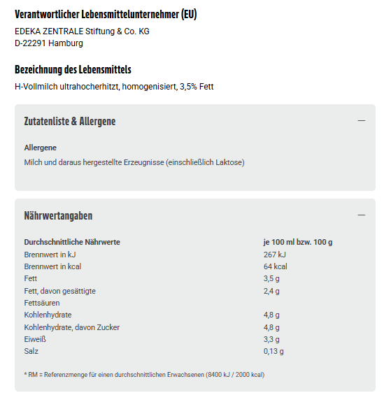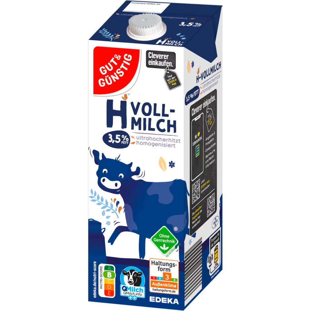 H-Vollmilch ultrahocherhitzt, homogenisiert, 3,5% Fett