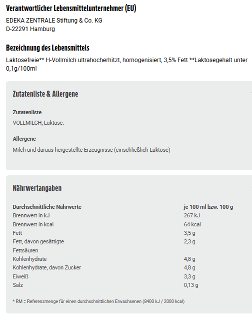 VOLLMILCH, Laktase.