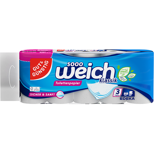 Kaufen Sie jetzt das Gut & Günstig Toilettenpapier „sooo weich klassik“ und erleben Sie den Unterschied selbst!