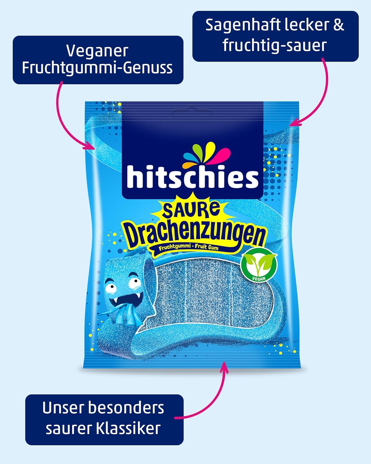 xDer TikTok Trend zum Einfrieren: Unsere Saure Drachenzungen bringen leckeres, drachenstark-saures Kauvergnügen und sind eingefroren megaaa knackig! Nicht nur für TikTok Fans, sondern alle, die auf saures und besonders blaues Fruchtgummi stehen