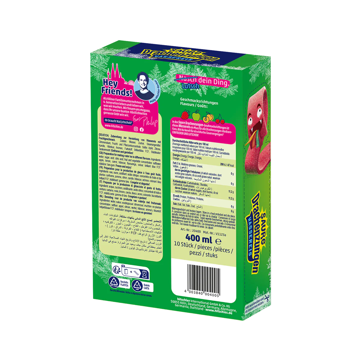 x1x Hitschies Saure Drachenzungen Wassereis (400ml)