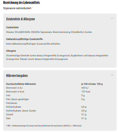 Wasser, SOJABOHNEN, WEIZEN, Speisesalz, Branntweinessig, Ethylalkohol, Zucker.