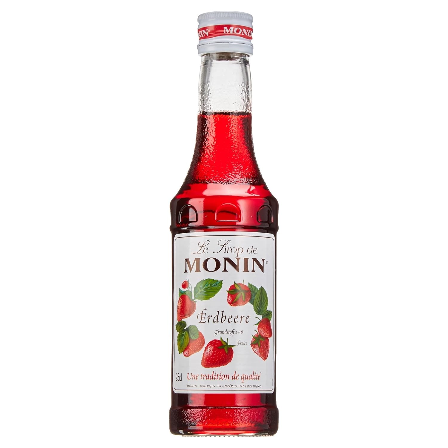 Zutaten: Zucker, Wasser, konzentrierter Erdbeer- und Fruchtsaft, Aroma, Säuerungsmittel: Zitronensäure, Farbstoff: Anthocyane. Fruchtsaftgehalt: mind. 19 %, davon 18 % Erdbeersaft.