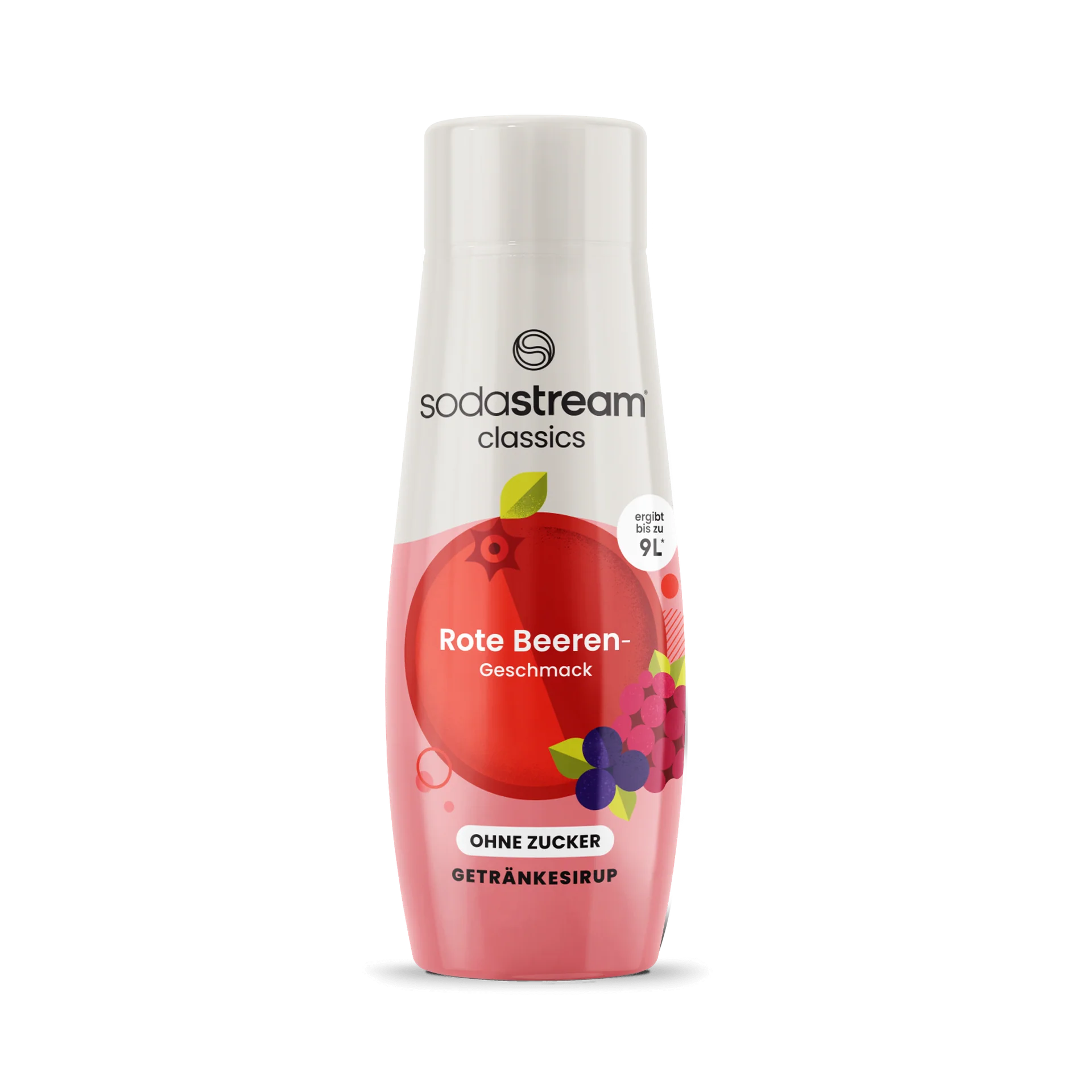 Getränkesirup mit dem Geschmack roter Beeren. Mit Süßungsmitteln.
