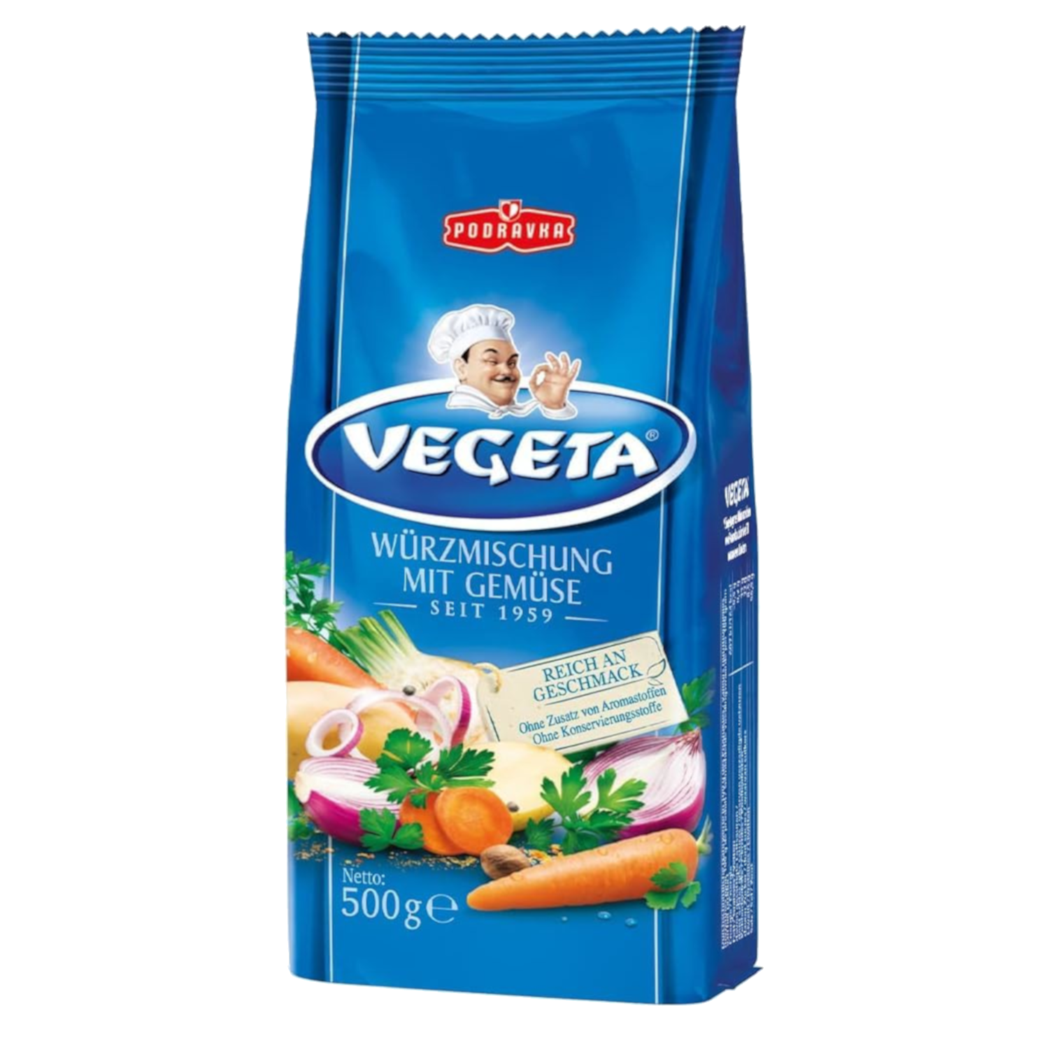 Zutaten: Speisesalz, getrocknetes Gemüse 15,5% (Karotten, Pastinake, Kartoffel, Zwiebel, SELLERIE, Blattpetersilie), Geschmacksverstärker (Mononatriumglutamat, Dinatriuminosinat), Zucker, Gewürze, Maisstärke, Farbstoff (Riboflavin).