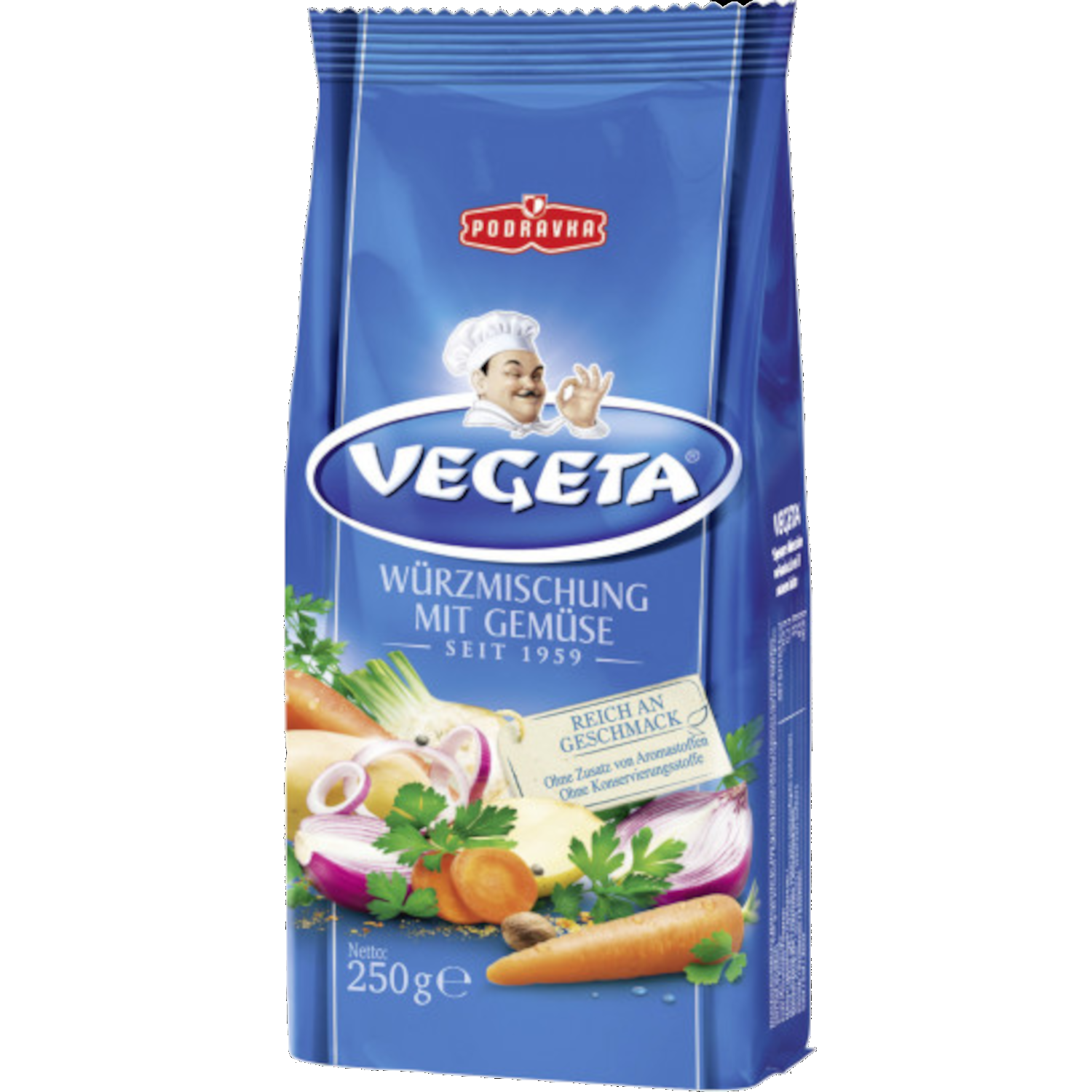 Zutaten: Speisesalz, getrocknetes Gemüse 15,5% (Karotten, Pastinake, Kartoffel, Zwiebel, SELLERIE, Blattpetersilie), Geschmacksverstärker (Mononatriumglutamat, Dinatriuminosinat), Zucker, Gewürze, Maisstärke, Farbstoff (Riboflavin).