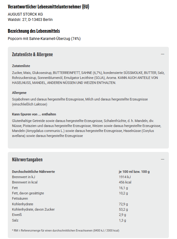 Popcorn mit Sahne-Karamell-Überzug (74%)